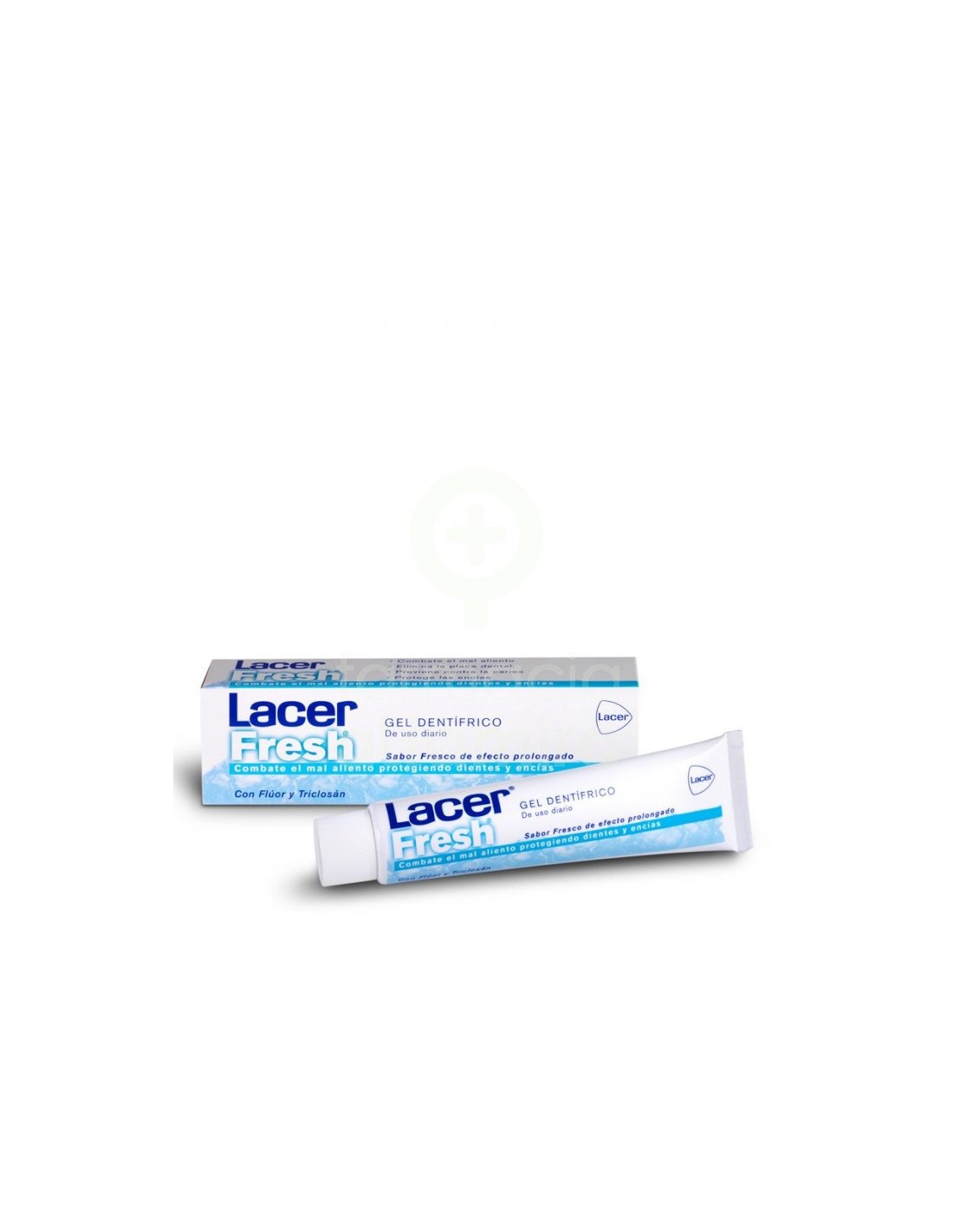 Lacer Fresh gel dentífrico aliento fresco 125ml proporciona un sabor fresco combatiendo el mal aliento. Su fórmula con baja abrasividad permite una limpieza diaria. Eliminando la placa y previniendo la caries. Deja un agradable olor de frescura en tu boca.