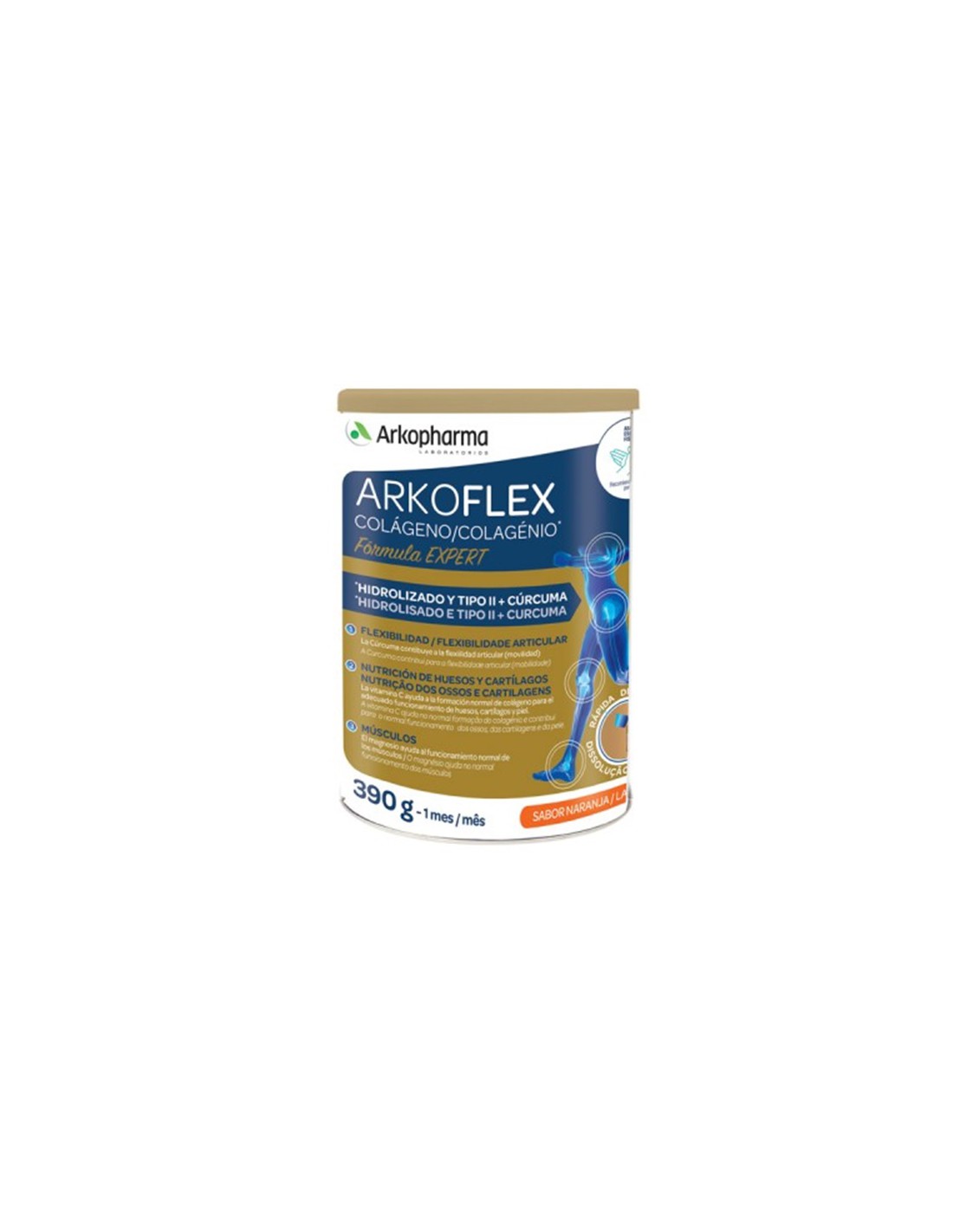 Además de colágeno hidrolizado y tipo II nativo, Arkoflex Colágeno Fórmula Expert, asocia ingredientes especialmente seleccionados por sus benefiicos en el aparato locomotor.