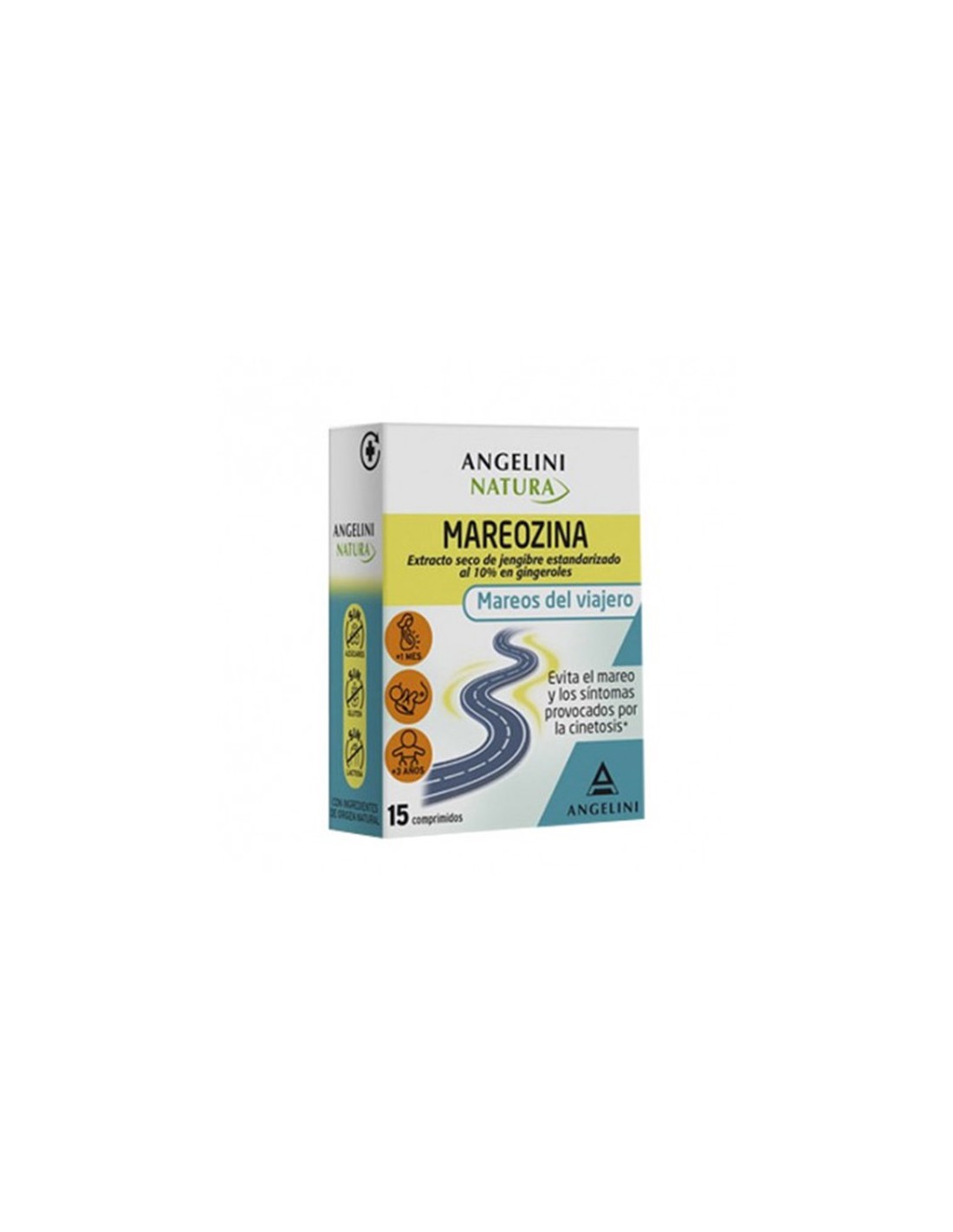 Angelini Mareozina 15 Comprimidos se trata de un fantástico complemento alimenticio elaborado especialmente para contribuir a conseguir le bienestar durante los mareos. Favorece el buen funcionamiento del estómago en el momento en el que estamos haciendo un viaje. Así mismo, también contribuye al bienestar gastrointestinal y poder evitar los mareos. Esto lo consigue principalmente la introducir en su composición el Jengibre que nos ayudará enormemente en la causa de los mareos.