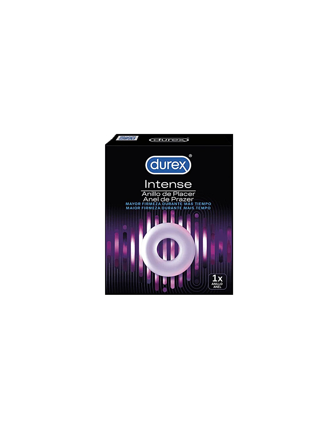 El nuevo Intense Anillo de Placer Durex ha sido diseñado para ayudar a mantener una erección más firme durante más tiempo e intensificar el placer de ambos. Es un anillo muy elástico y discreto y se puede utilizar con o sin preservativo estándar. Simplemente colócalo en la base del pene para proporcionar un cómodo ajuste.